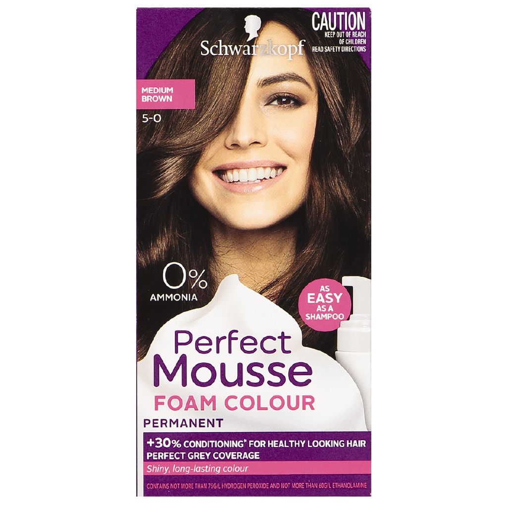 Schwarzkopf Perfect Mousse Hair Colour 5 0 Medium Brown The Warehouse